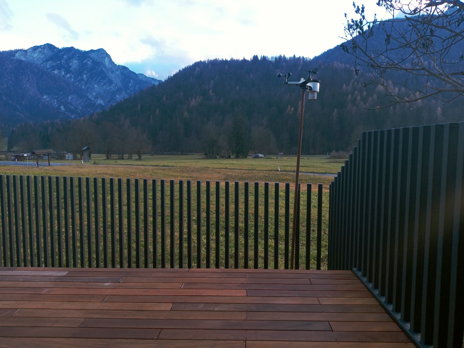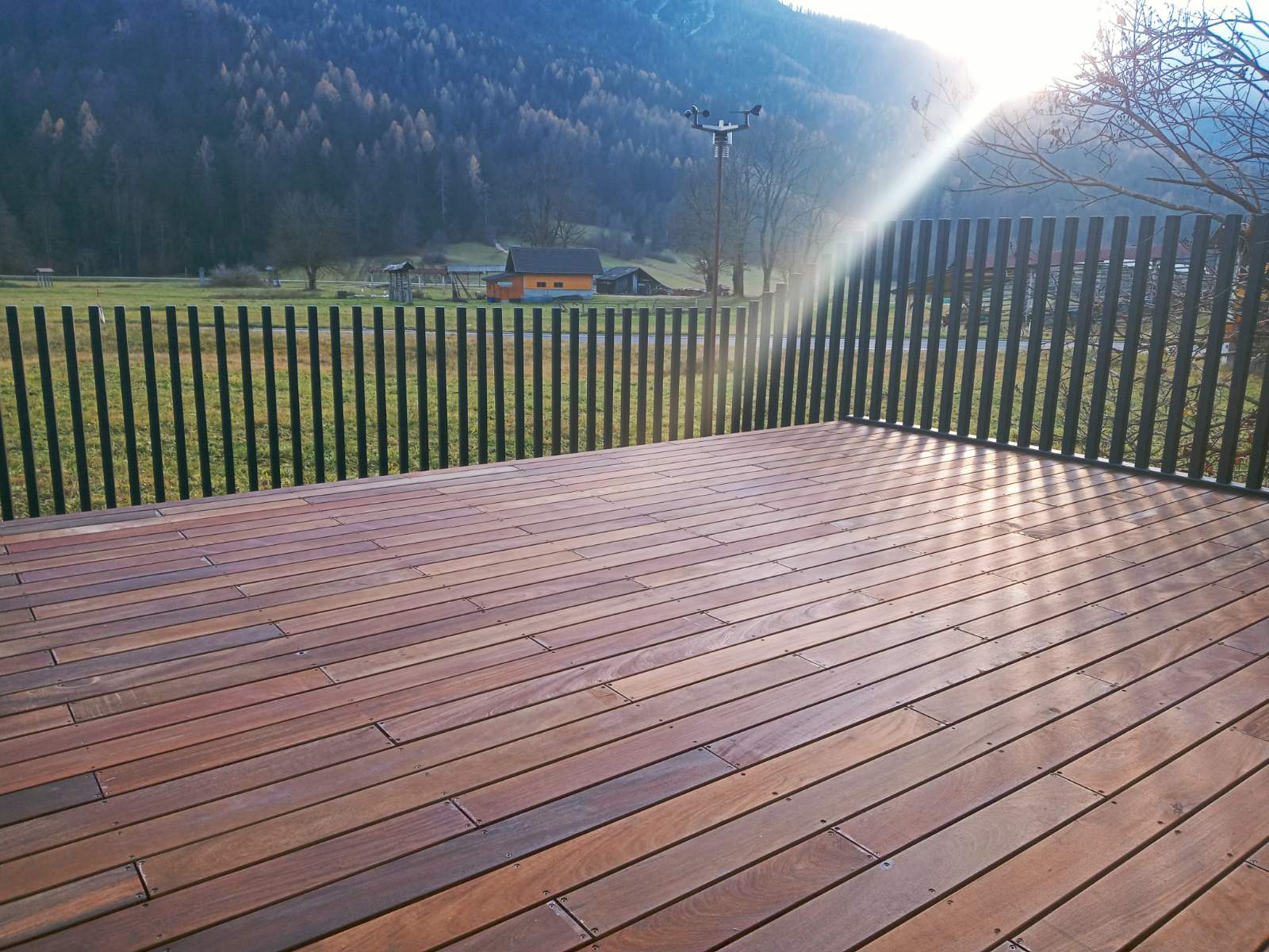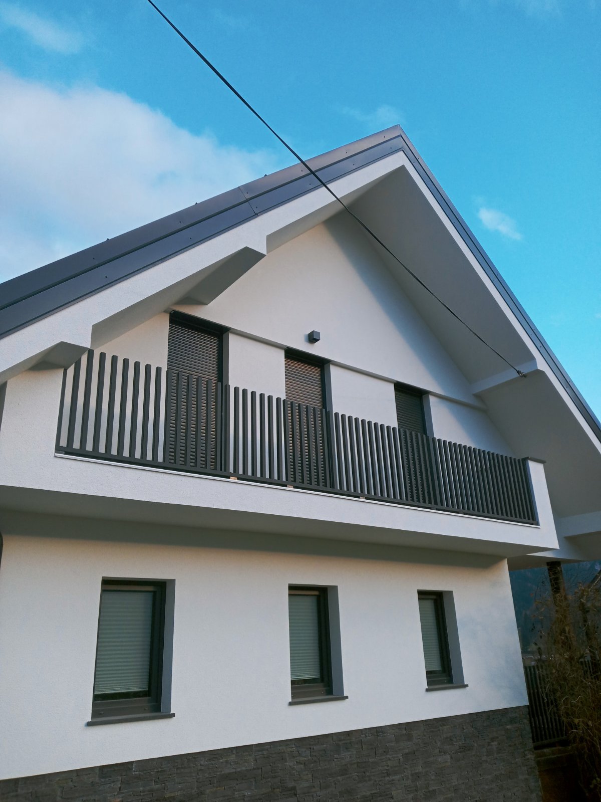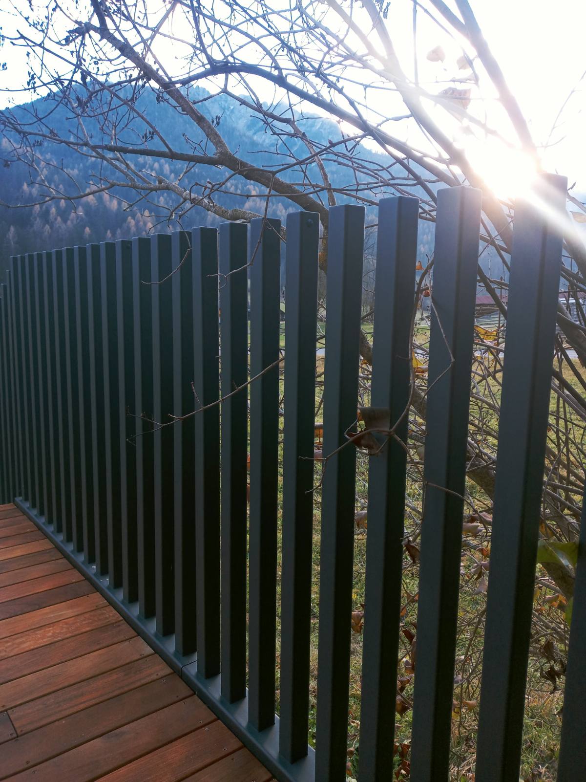 Projekt: Hiša, Kranjska Gora Hiša, Kranjska Gora izdelava kovinske ograje kovinske cevi 40 x 40 mm prašno barvanje izdelava lesene terase les Ipe Lappacio (Srednja in Južna Amerika) letve vijačene na leseno podkonstrukcijo